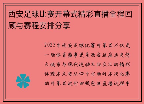 崇仙足球比赛直播时间表及精彩赛事回顾全攻略旨在为广大足球爱好者提供一个全面而详尽的参考。文章首先将介绍崇仙足球比赛的直播时间安排,确保每位球迷能够及时关注自己喜爱的球队与赛事。接着,我们将深入分析近期...